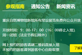 9:00開始入場,9:00~9:10為開館準備工作時間,9:10正式為觀眾提供服務并可進入展廳參觀,16:30停止入館,16:45開始清場,17:00正式閉館